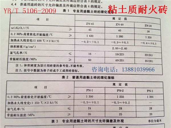 3.等級(jí)牌號(hào):川耐牌粘土磚有三種:一級(jí)42%,牌號(hào)PN-1;二級(jí)35%,牌號(hào)PN-1,三級(jí)25%,牌號(hào)PN-1。