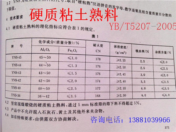 9.產(chǎn)品指標:粘土料的Al2O3=36-45%,耐火度≥1670℃,體積密度≥2.2g/cm3。高鋁料的Al2O3=48-75%,耐火度≥1710℃,體積密度≥2.3g/cm3。